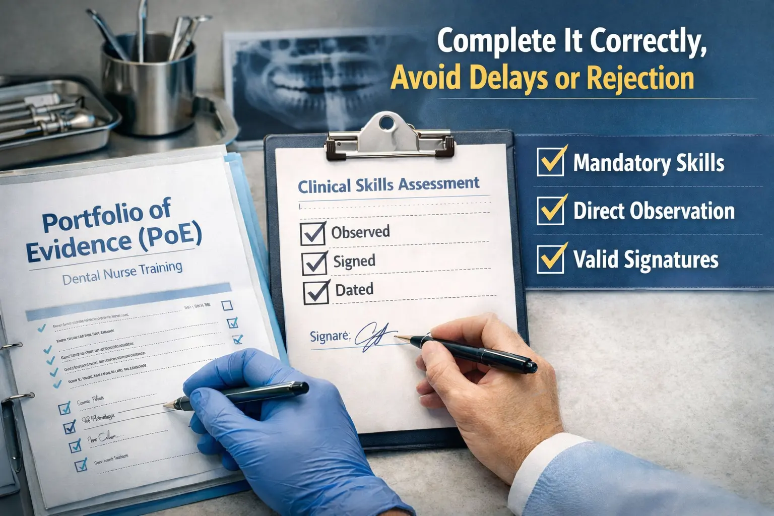 For trainee dental nurses, the Portfolio of Evidence (PoE) is not simply coursework—it is a formal, regulated record of clinical competence. Each year, a significant number of learners experience delays, resubmissions, or rejection because their PoE does not meet the required standard set by National Examining Board for Dental Nurses (NEBDN).